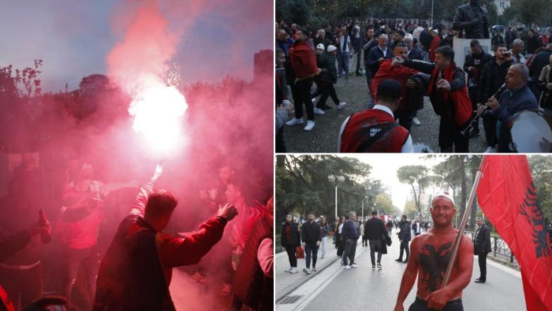 VIDEO/ Nis festa kuqezi, mijëra tifozë mblidhen në Bulevardin 'Dëshmorët e Kombit' para ndeshjes me Anglinë
