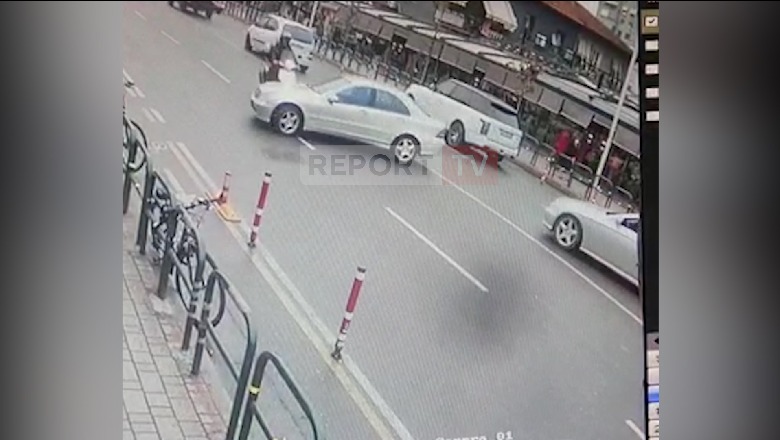 Makina merr kthesën keq në mes të rrugës, Report Tv siguron videon nga aksidenti! Si fati e shpëtoi motoristin në Tiranë