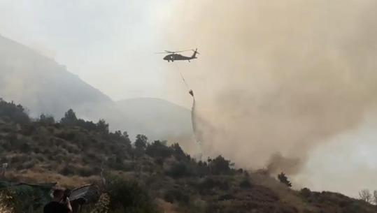 Zjarri në fshatin Bolenë, nis operacioni nga ajri me helikopter për të shuar flakët (VIDEO)
