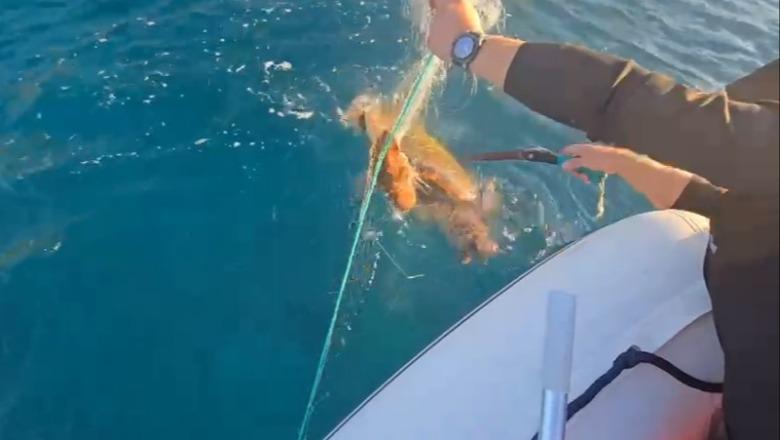Vlorë/ Shpëtohet breshka e detit në Palasë, kishte ngecur në rrjetet e peshkatarëve (VIDEO)