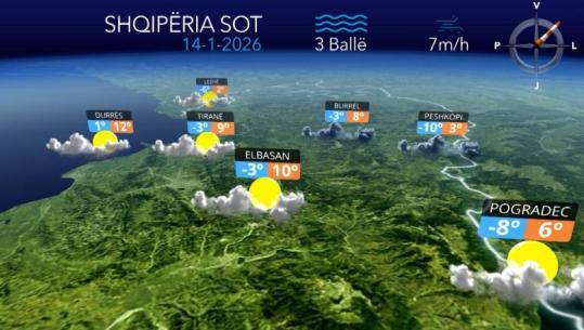 Temperatura deri në 14 gradë celcius...parashikimi i motit për sot 14 janar 2026