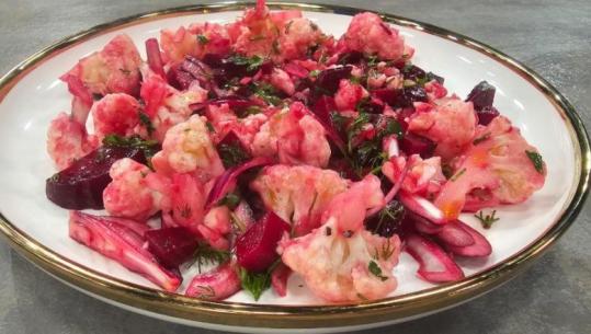 Presim mishin në kubikë të vegjël, e kaurdisim duke shtuar pak ujë dhe salcën e koncentruar. Shtojmë qepën e prerë imët sikurse dhe një kokë hudhër me karrotat e prera në shkopinj. I lëmë të ziejnë dhe kur të jenë të bëra shtojmë makaronat duke i kaurdisur me atë pak lëng që ka mbetur. Më pas shtojmë pjesën e ujit të valuar. Rregullojmë shijen me erëzat dhe majdanoz nëse dëshirojmë.