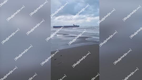 VIDEOLAJM/ Anija e mallrave bllokohet në afërsi të brigjeve të Tales në Lezhë, ndaloi prej detit të trazuar, por mbeti në cektinë