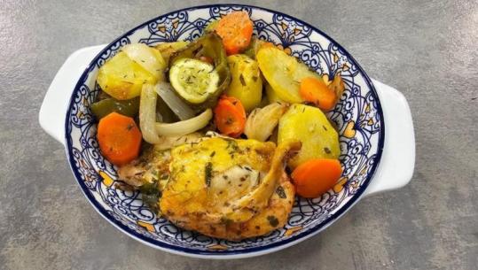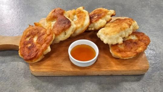 Presim patatet në disqe të holla. Në një tas shtojmë qumështin, vezët, miellin, vajin, kripën, piperin dhe majdanozin. I përziejmë mirë dhe i bashkojmë me patatet. Tepsinë e lyejmë me vaj dhe shtojmë masën e përgatitur. E vendosim në furrë të parangrohur në temperaturën 200 gradë Celsius për 30 minuta.