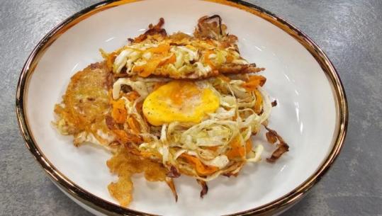 Nga lëngu i tenxheres marrin 2 garuzhde, shkrijmë në të salcën dhe e spërkasim mbi perime.