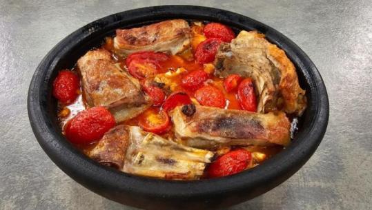 Parangrohim furrën në temperaturën 200ºC. sardelet të lara dhe të pastruara i hapim si dy faqe libri, i largojmë kokën, bishtin dhe shtyllën kurrizore. Qepën e kemi prerë në kubikë të vegjël. Domatet i kemi qëruar nga lëkura dhe farat, kurse tulin e presim në kubikë të vegjël. Hudhrat i grijmë imët. Në një tas mesatar vendosim qepën në kubikë, domatet në kubikë , hudhrat e grira imët dhe 4 lugë gjelle vaj ulliri. Presim majdanozin imët dhe i shtojmë në tasin me perime. Shtojmë gjithashtu edhe kripë e piper të zi. Lyejmë një tavë me vaj ulliri, e spërkatim tavën me peksimadhe . Trazojmë perimet që kemi në tas dhe 2-3 lugë gjelle perime të grira. I përhapim nëpër tavë me qëllim që të mos thahet. Fillojmë të vendosim sardelet e hapura si faqe libri me kurrizin nga poshtë dhe të hapura nga lart. Shpërndajmë mbi peshk perimet e prera në kubikë. Mbulojmë përsëri perimet me sardele të tjera, por rreshti i dytë i sardeleve do të jetë pjesa e hapur poshtë dhe kurrizi nga lart. Shpërndajmë perimet që tepruan në pjesën anësore të peshkut. Spërkatim peshqit nga sipër me pak kripë. Përhapim verën mbi peshk dhe spërkatim me pak vaj e peksimadhe. Vendosim mbi peshk disa feta limoni dhe pak lëng limoni. Vendosim tavën me sardelet në furrë në temperaturën 200ºC për 30-35 minuta.