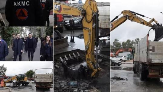 Moti i keq në Gjirokastër, punonjës të bashkisë dhe ushtria në terren për pastrimin e rrugëve nga inertet
