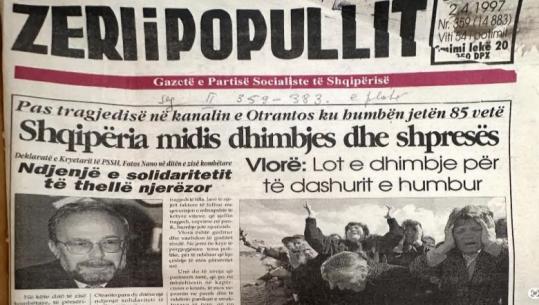 Çfarë shkruanin gazetat më 2 prill 1997/ Shqipëria në zi për 81 jetët e humbura në tragjedinë e Otrantos, Prodi zotohet se Italia do hedhë dritë mbi ngjarjen.
