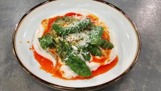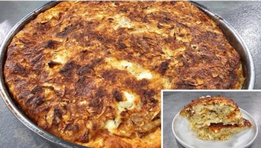 Në një tigan ngrohim vajin e lulediellit dhe kaurdisim qepët e grira derisa të zbuten. Shtojmë preshin e prerë në copa dhe vazhdojmë skuqjen derisa të zverdhet pak. Hedhim salcën e domates, piperin e zi, specin djegës dhe i përziejmë mirë. Shtojmë orizin, pak ujë dhe e lëmë të ziejë ngadalë derisa masa të mpikset pak. E heqim nga zjarri, e lëmë të ftohet pak më pas e përziejmë me vezët e rrahura. Kalojmë përzierjen në tavë dhe e pjekim në 180°C derisa të marrë ngjyrë të artë sipër.
