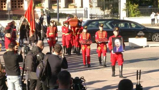 Detajet nga ceremonia shtetërore për Fatos Nanon, nga karafilat e bardhë mbi arkëmot te përcjellja në banesën e fundit me këngën e preferuar