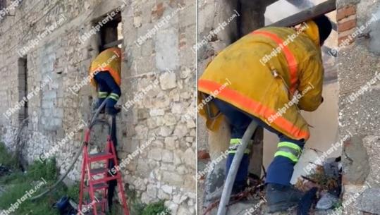 Ndërtesa në Vlorë përfshihet nga flakët, mjetet e parkuara vështirësojnë ndërhyrjen e zjarrfikësve